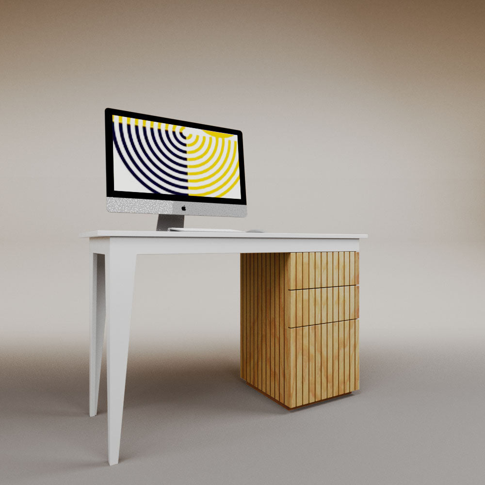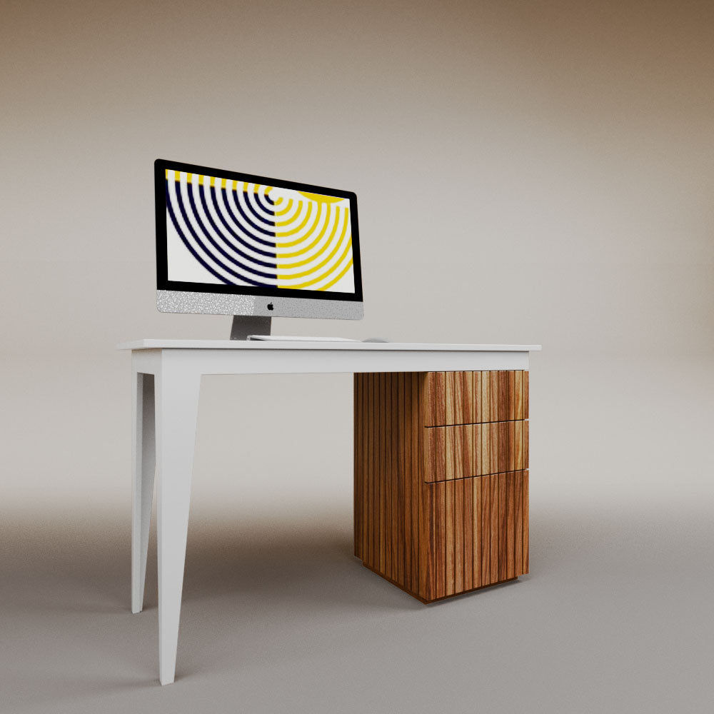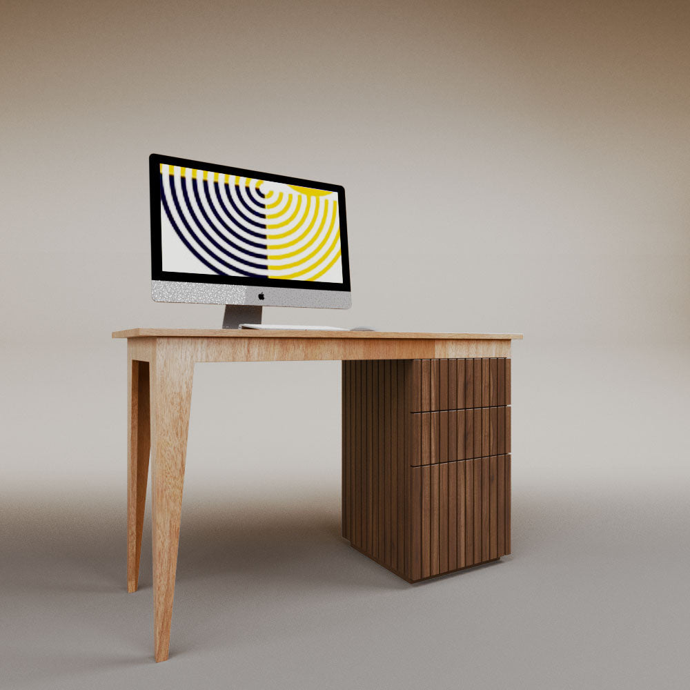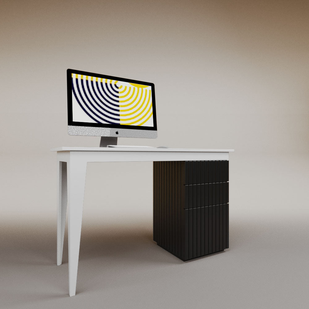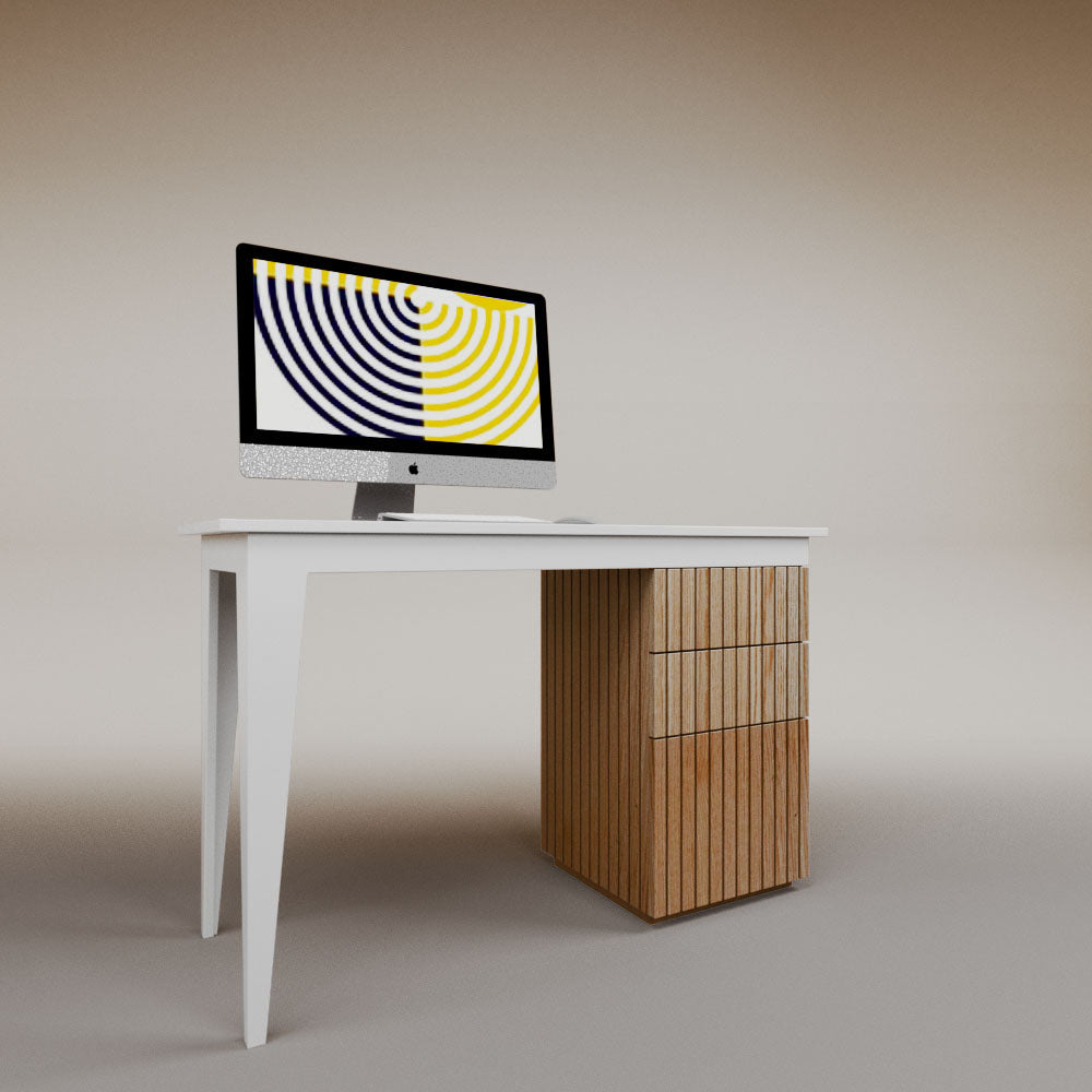 It has 1 chest of drawers with 2 drawers. It can be assembled on the left or right side.