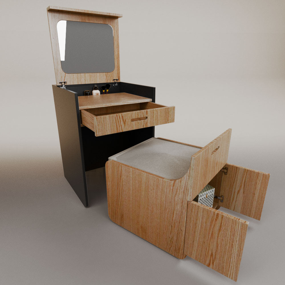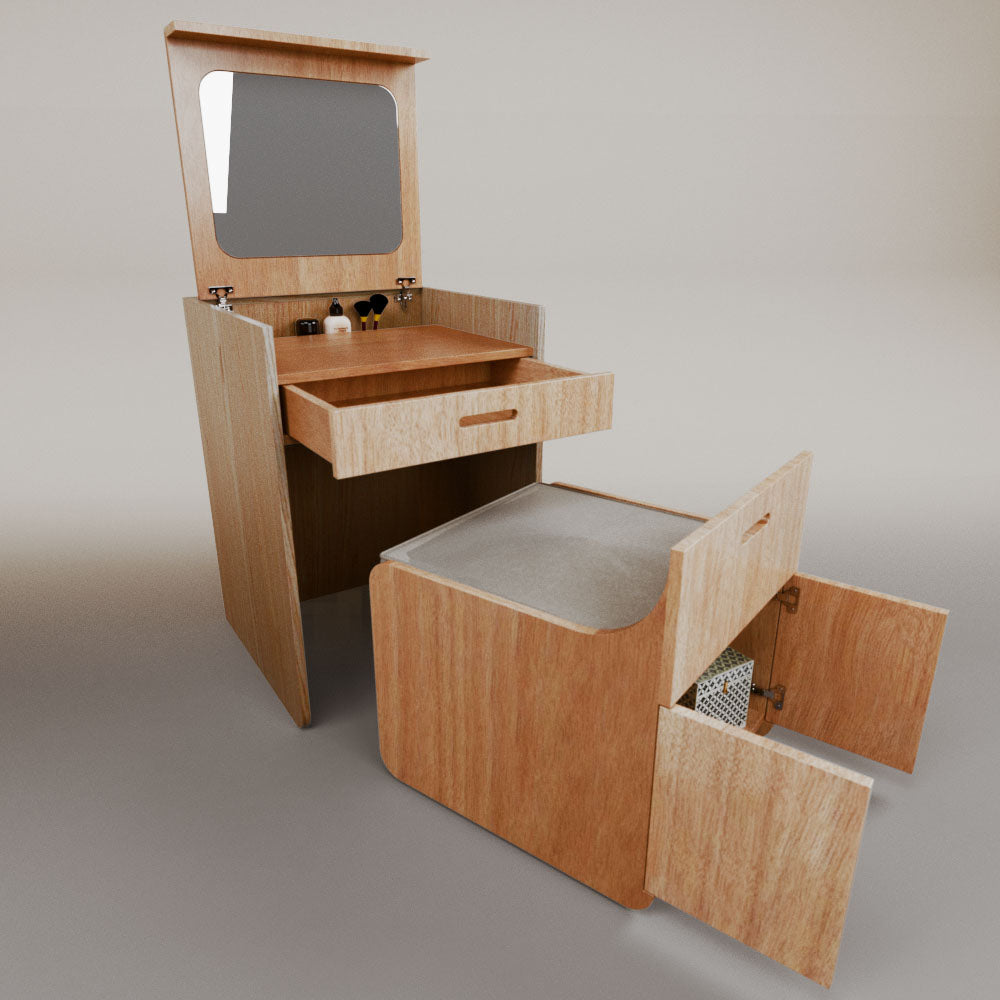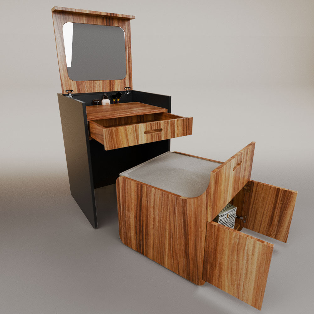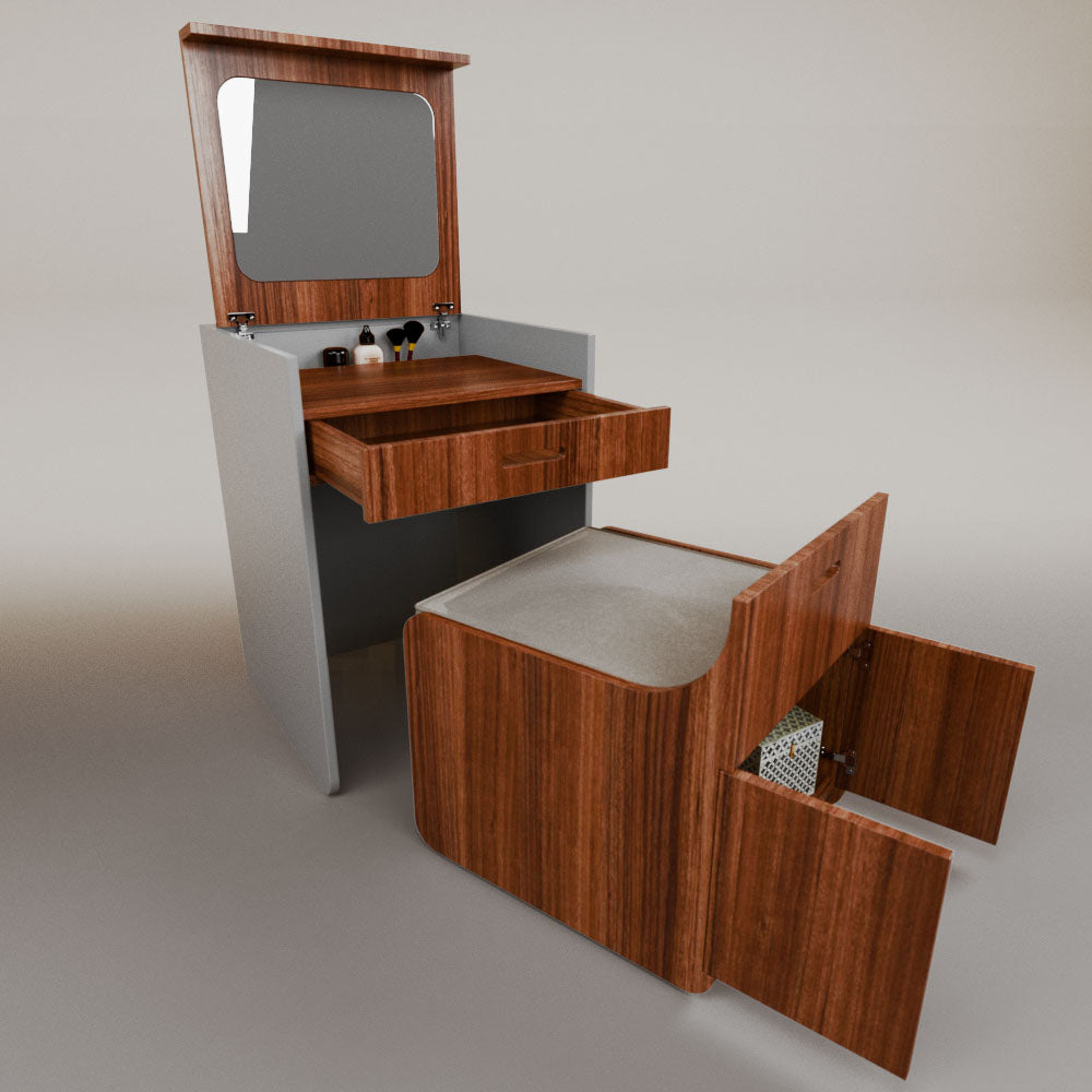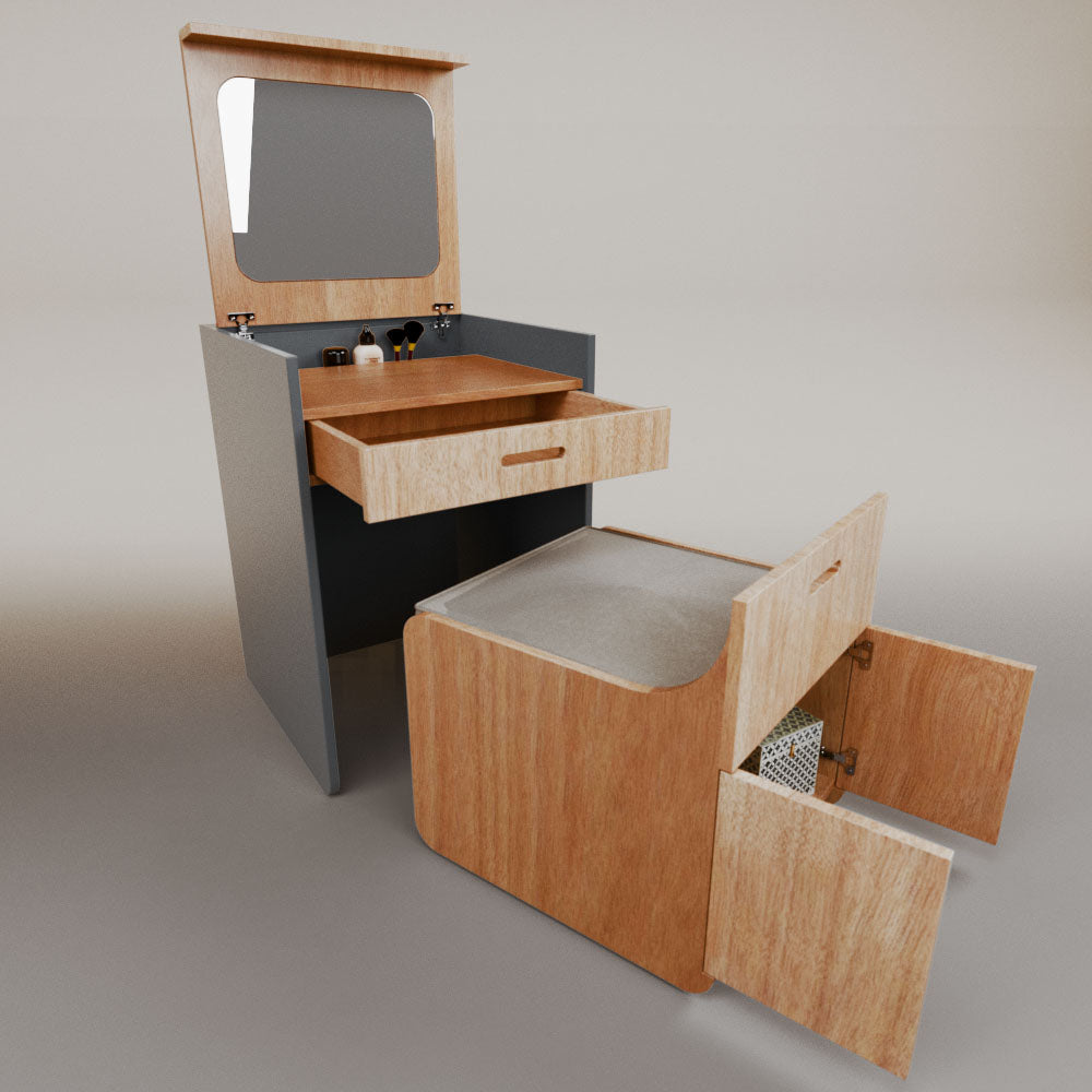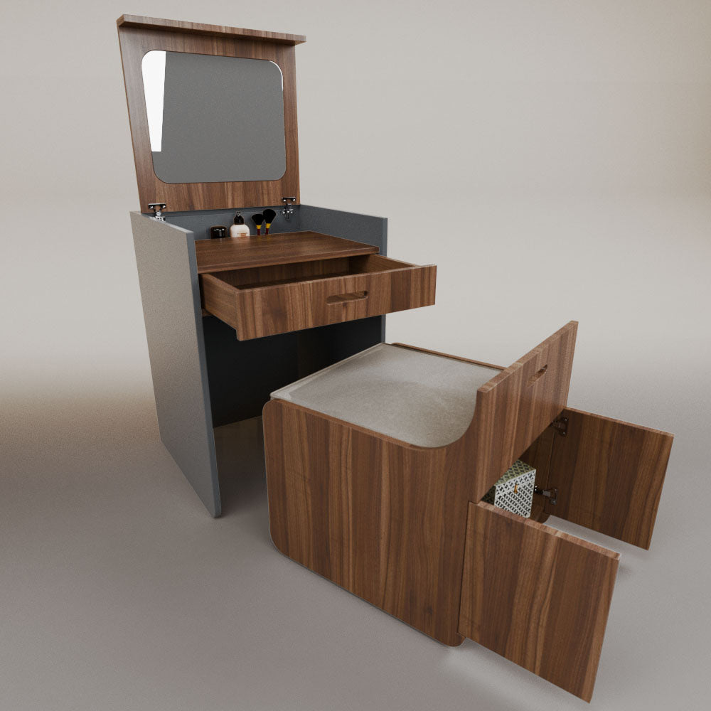 1 tapa abatible1 charola1 espejo1 cajón1 banca1 nicho cerrado1 cojín_______________________________60 x 60 x 84 (L x An x Al)_______________________________Entrega de 5-8 semanasGarantía 1 añoEnvío gratuito en CDMX