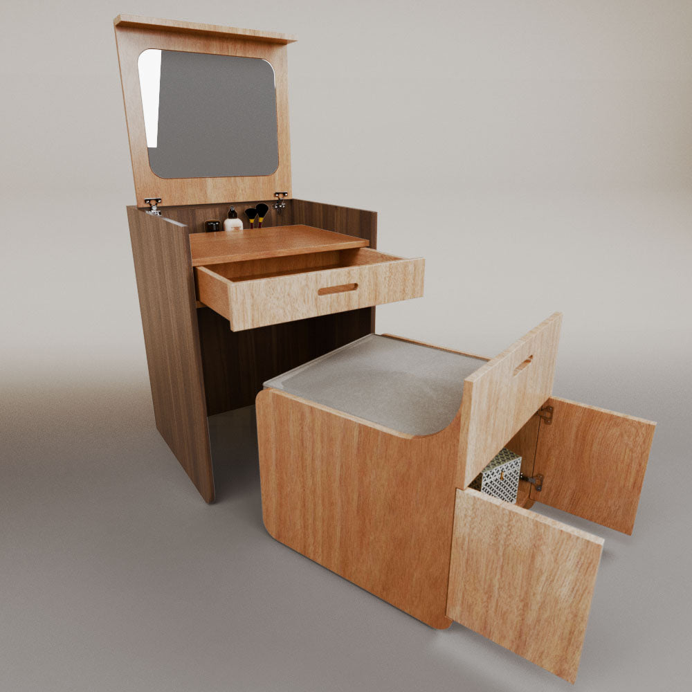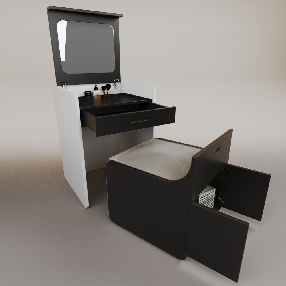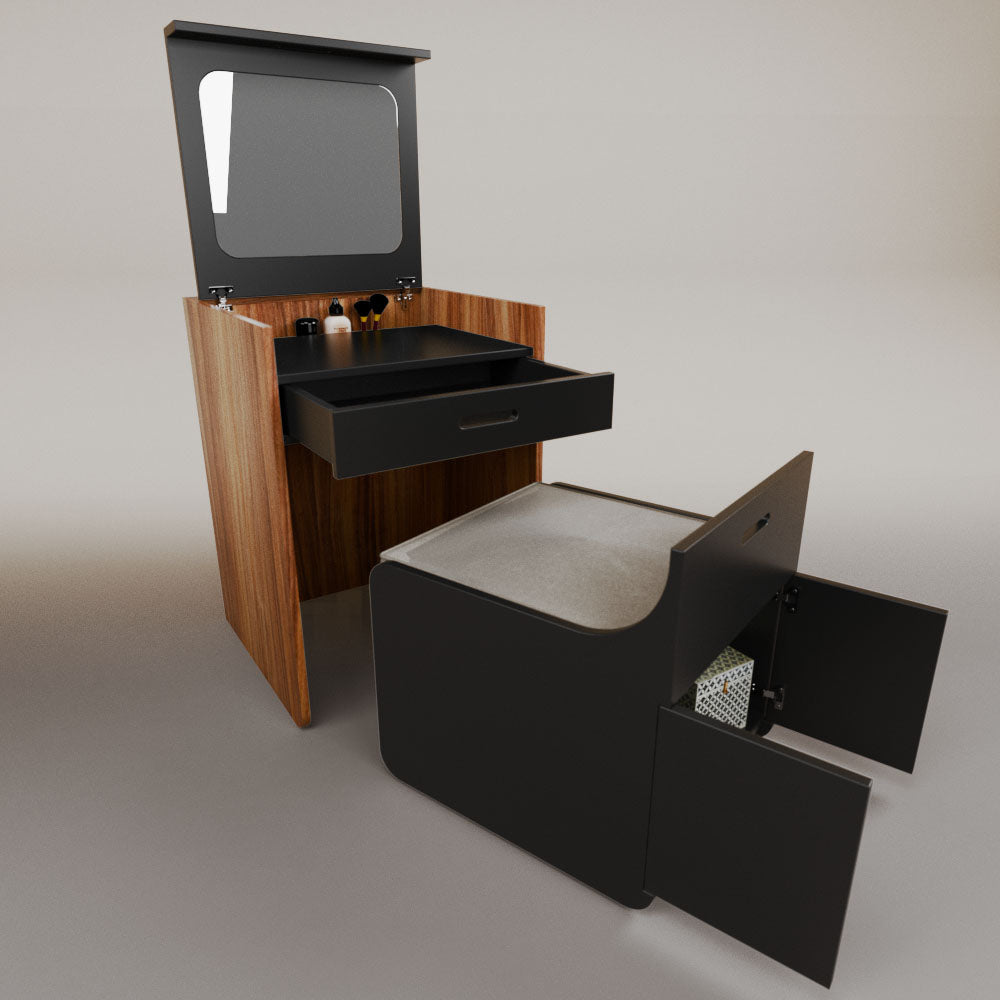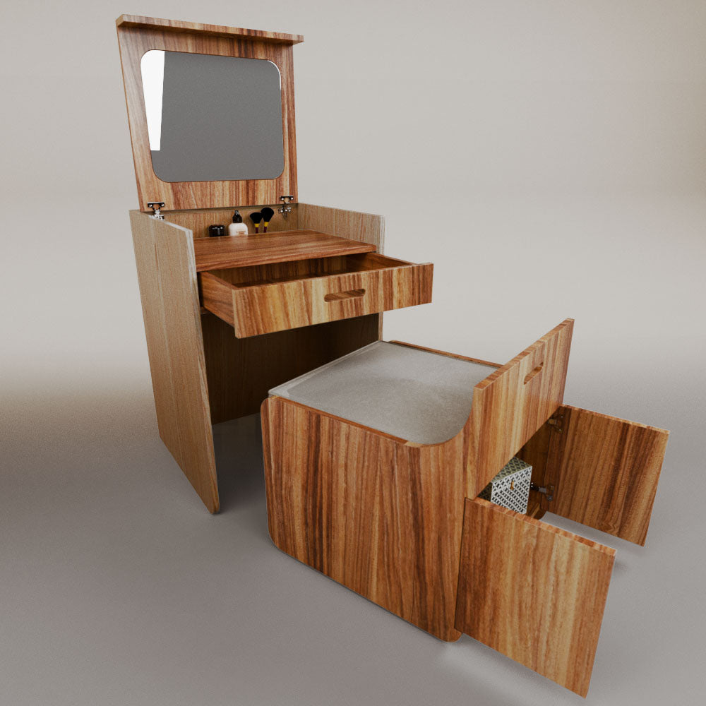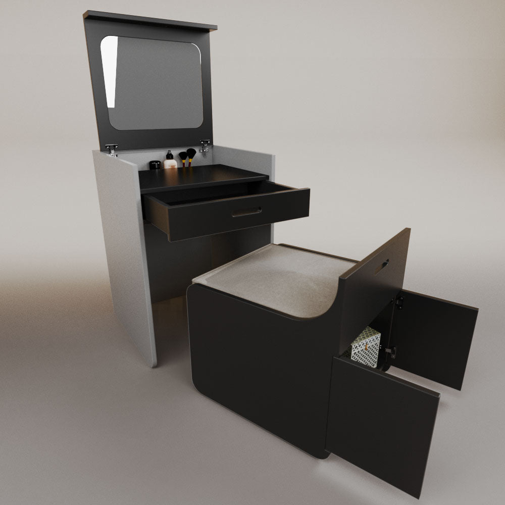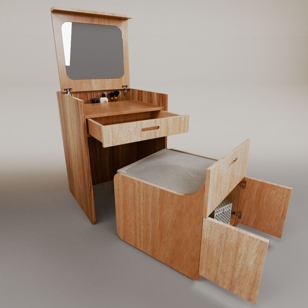 1 tapa abatible1 charola1 espejo1 cajón1 banca1 nicho cerrado1 cojín_______________________________60 x 60 x 84 (L x An x Al)_______________________________Entrega de 5-8 semanasGarantía 1 añoEnvío gratuito en CDMX
