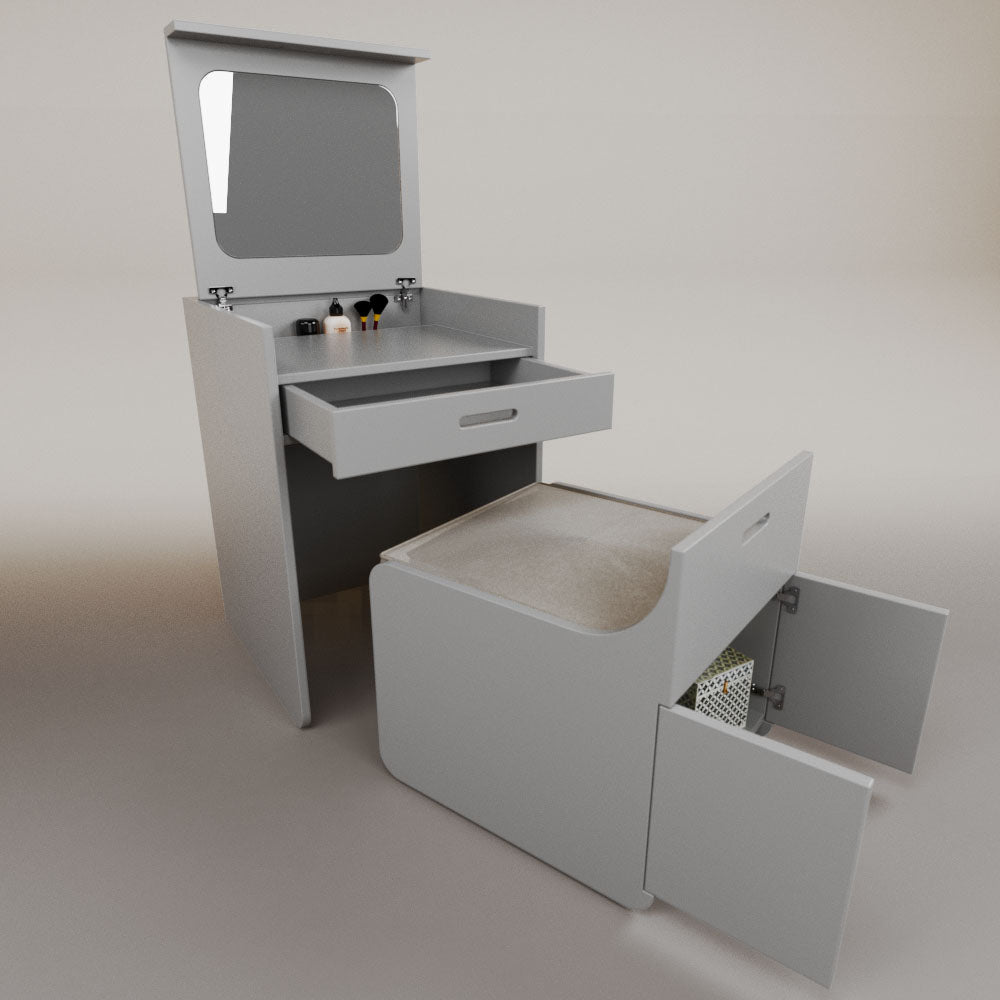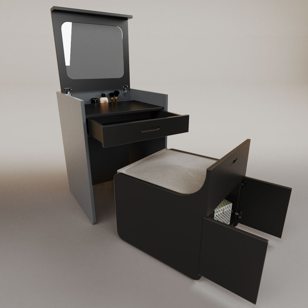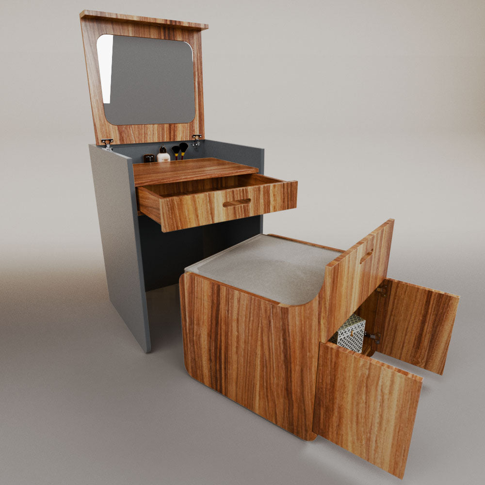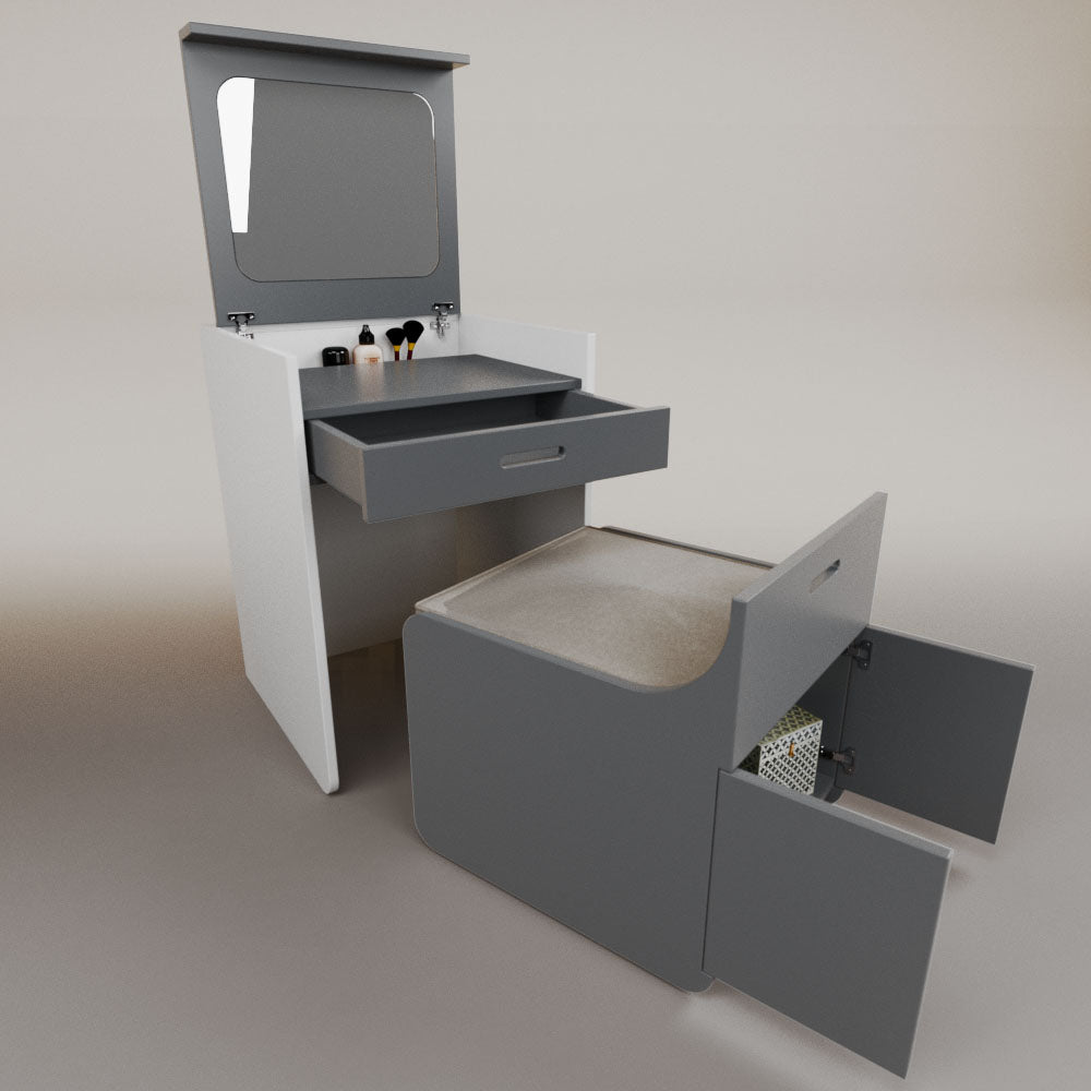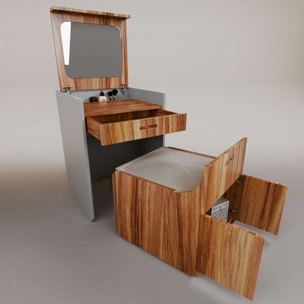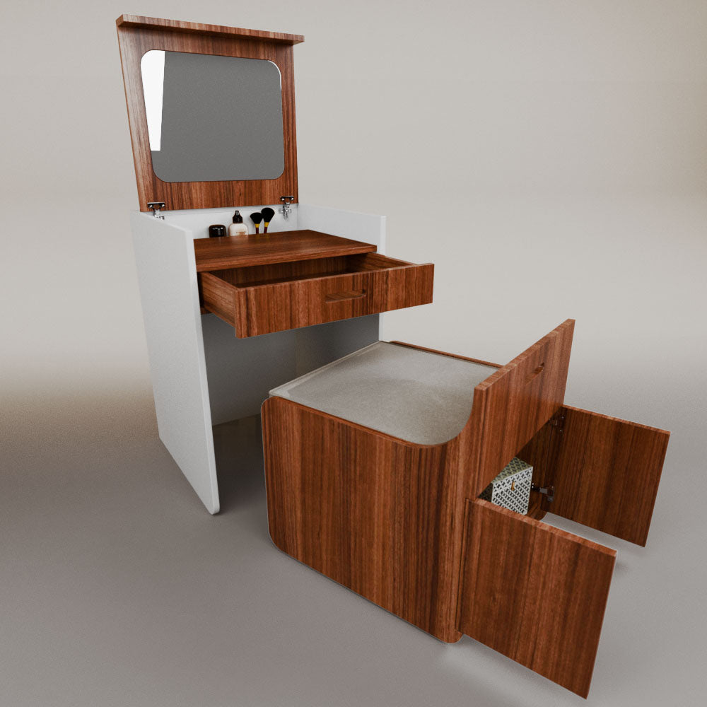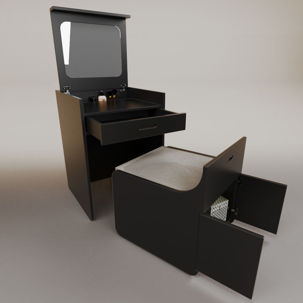 1 tapa abatible1 charola1 espejo1 cajón1 banca1 nicho cerrado1 cojín_______________________________60 x 60 x 84 (L x An x Al)_______________________________Entrega de 5-8 semanasGarantía 1 añoEnvío gratuito en CDMX