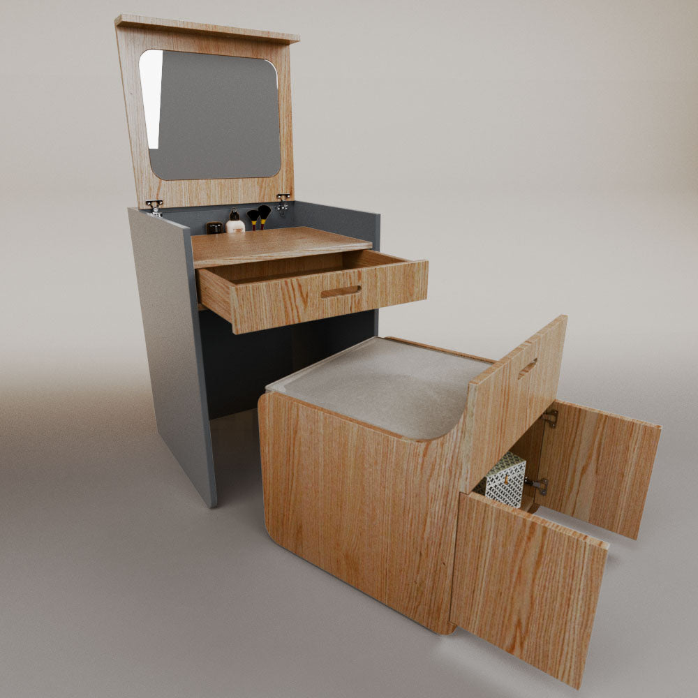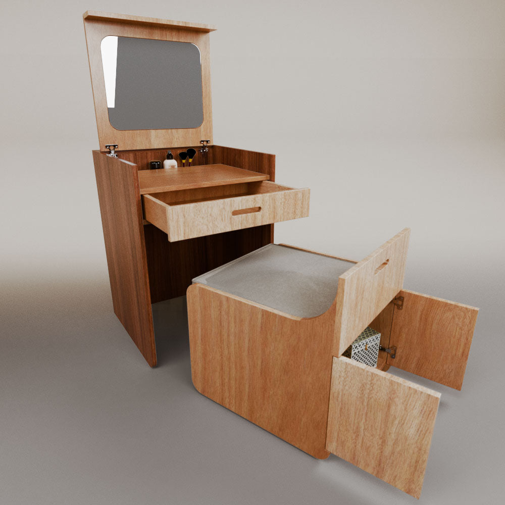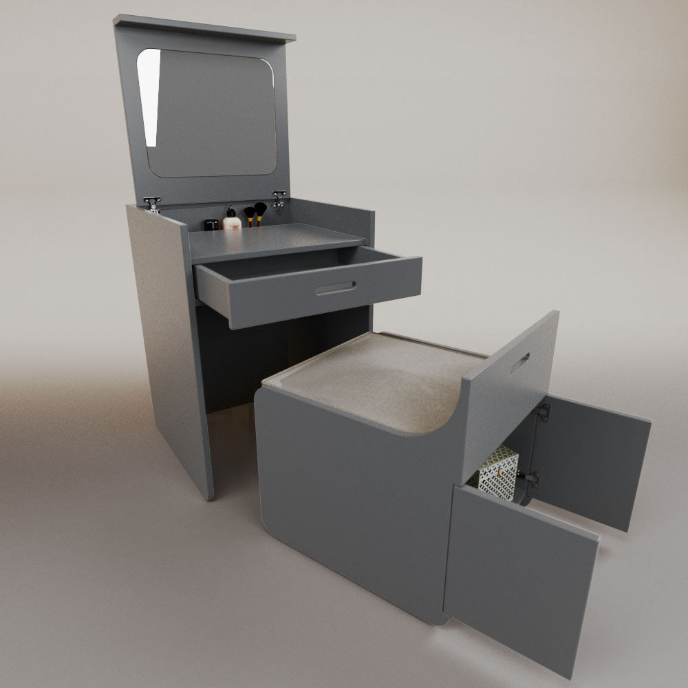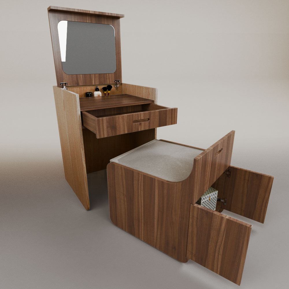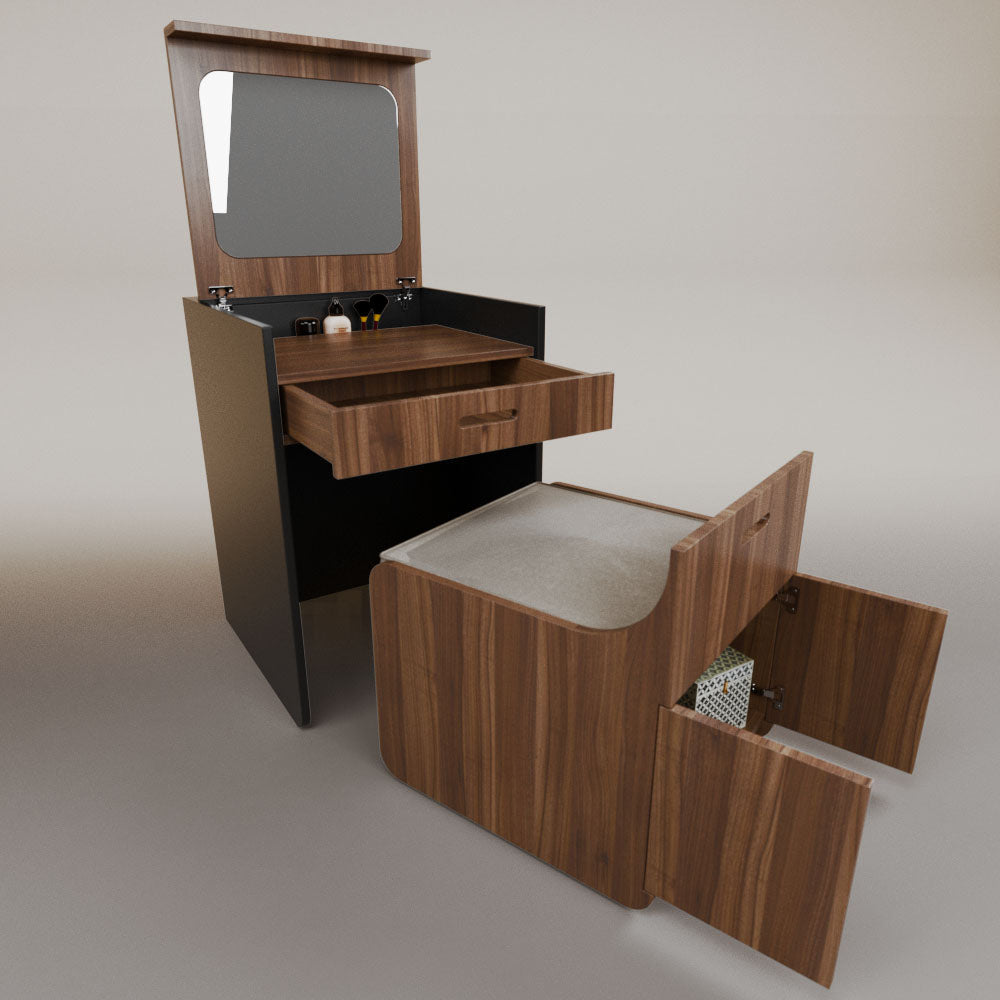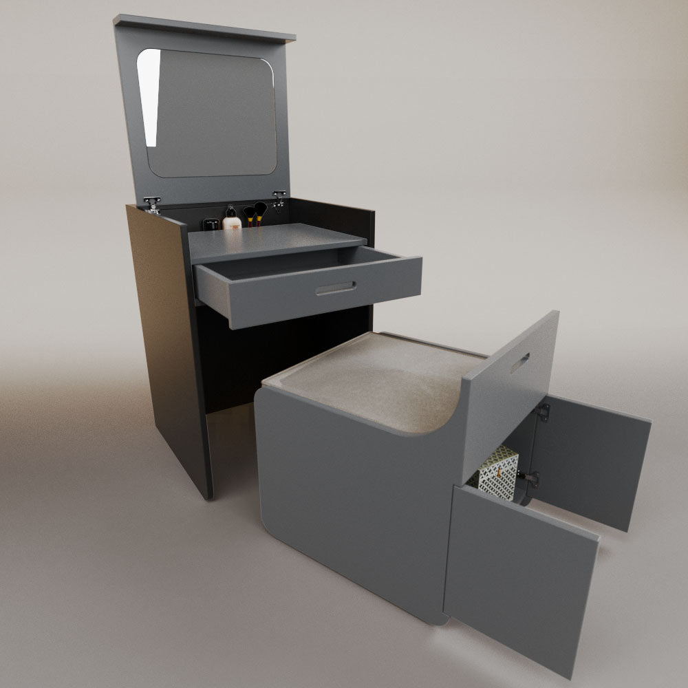 1 tapa abatible1 charola1 espejo1 cajón1 banca1 nicho cerrado1 cojín_______________________________60 x 60 x 84 (L x An x Al)_______________________________Entrega de 5-8 semanasGarantía 1 añoEnvío gratuito en CDMX