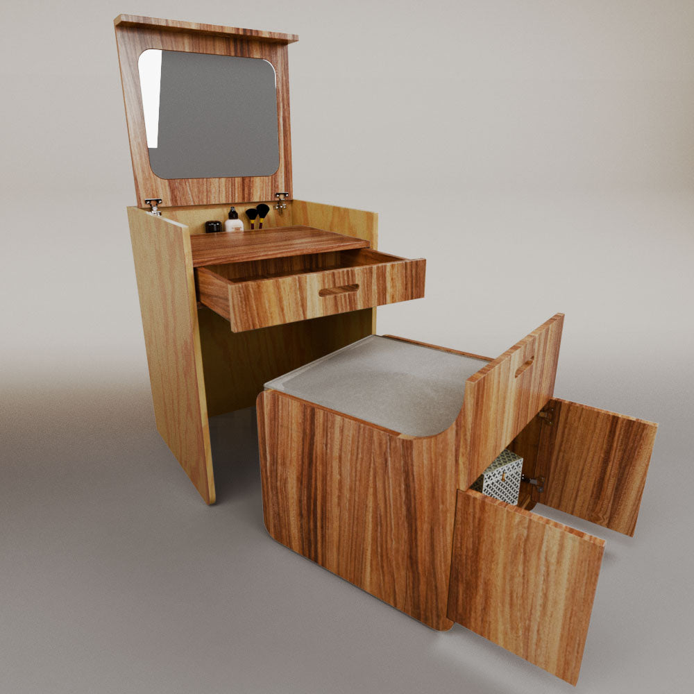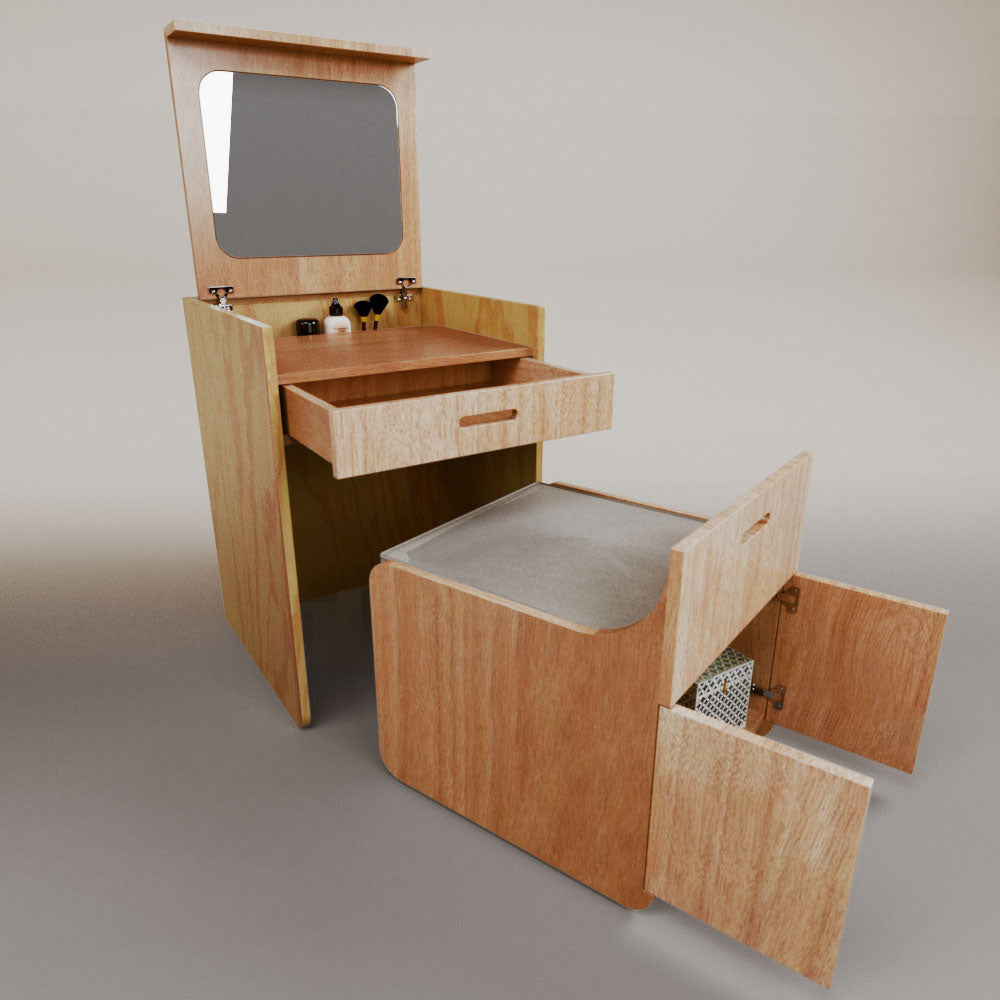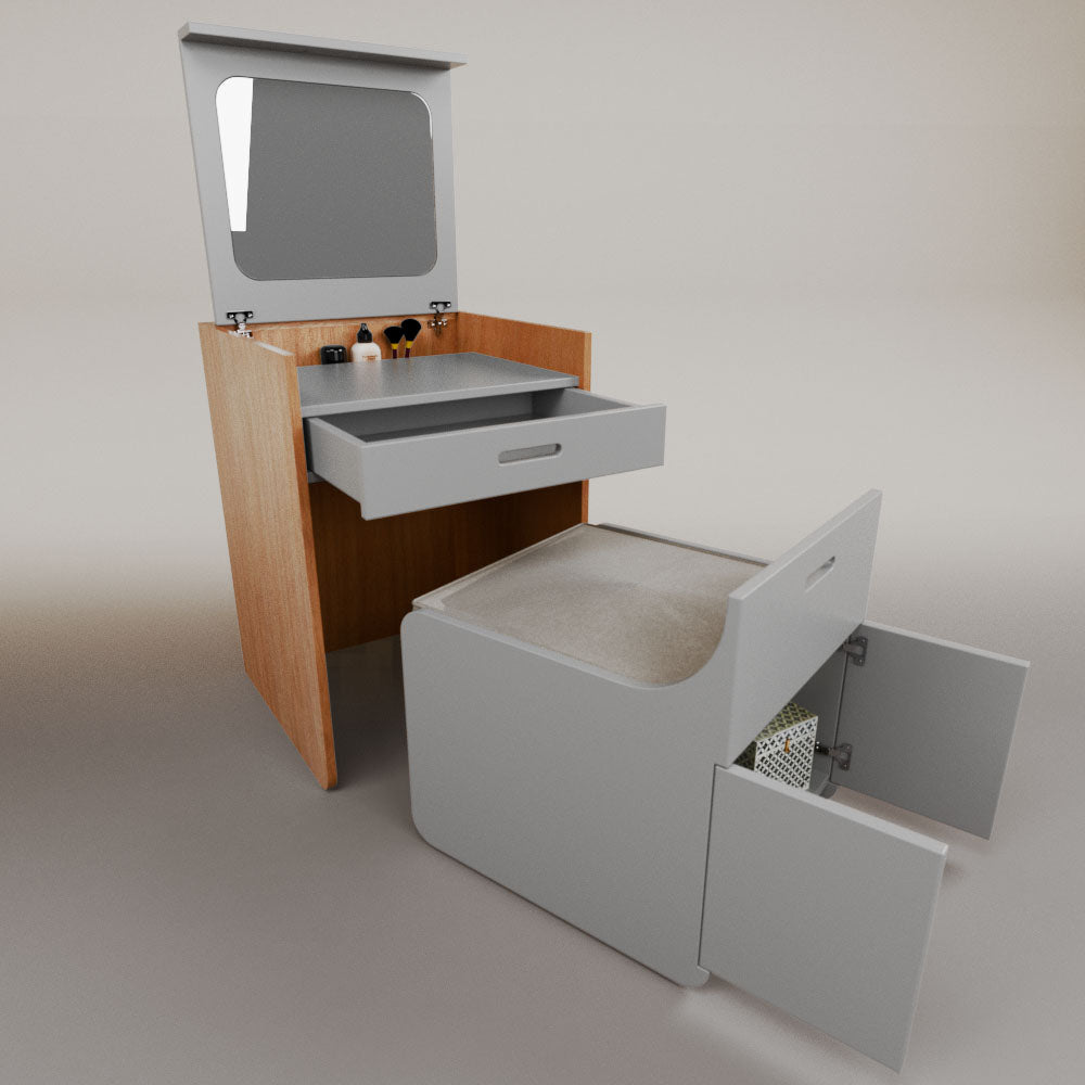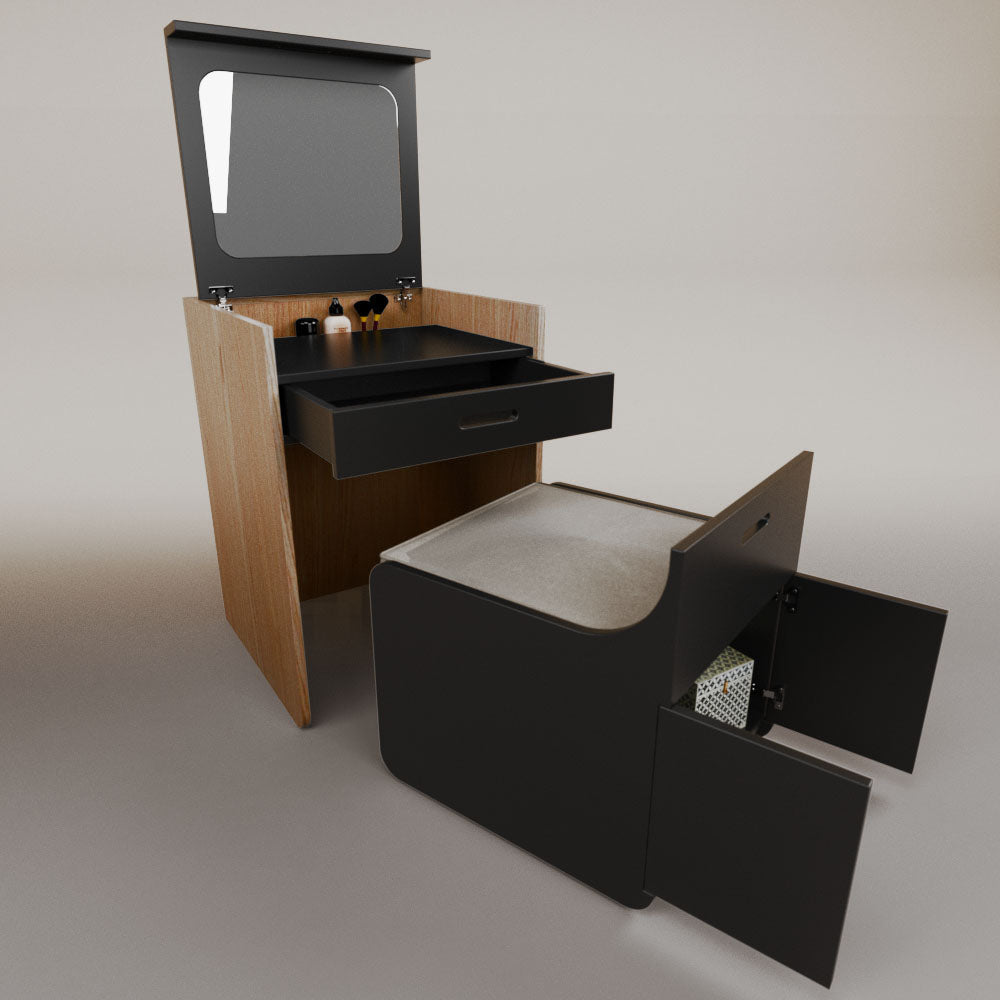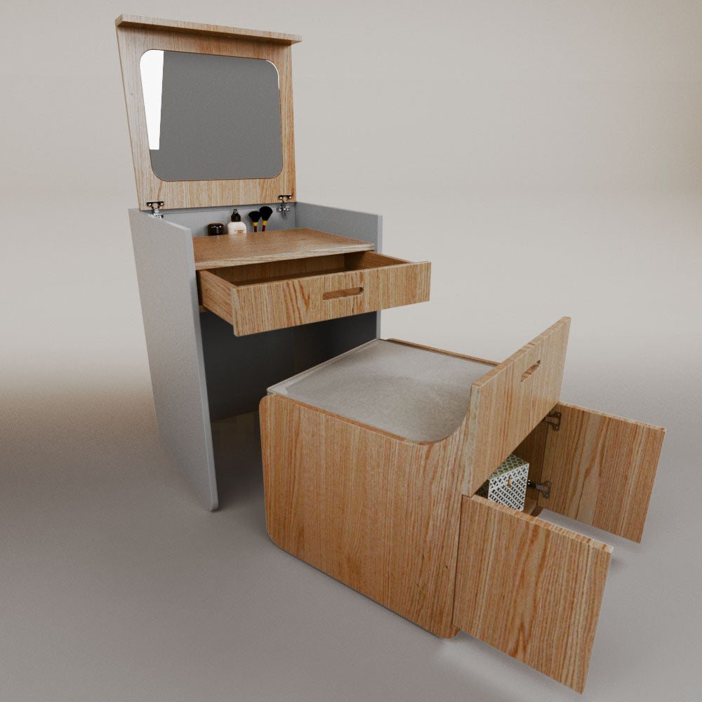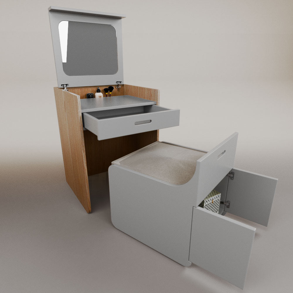 1 tapa abatible1 charola1 espejo1 cajón1 banca1 nicho cerrado1 cojín_______________________________60 x 60 x 84 (L x An x Al)_______________________________Entrega de 5-8 semanasGarantía 1 añoEnvío gratuito en CDMX