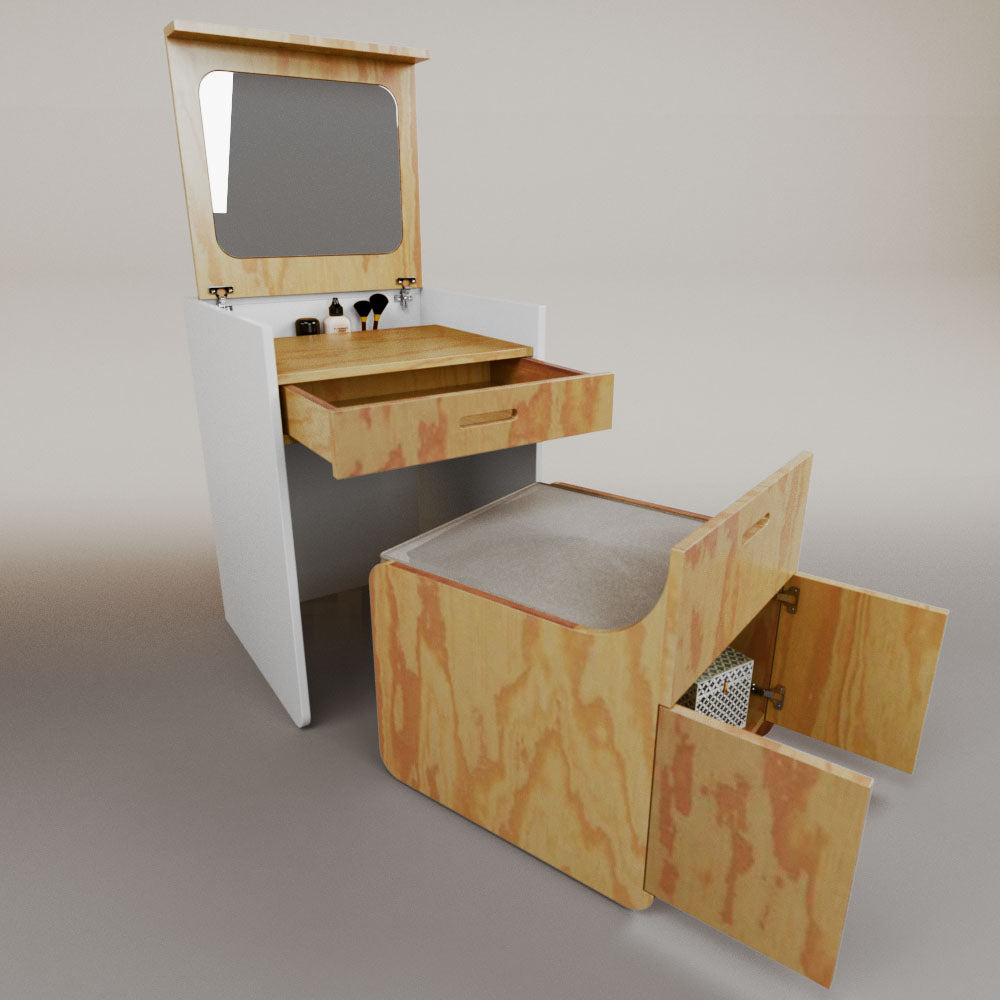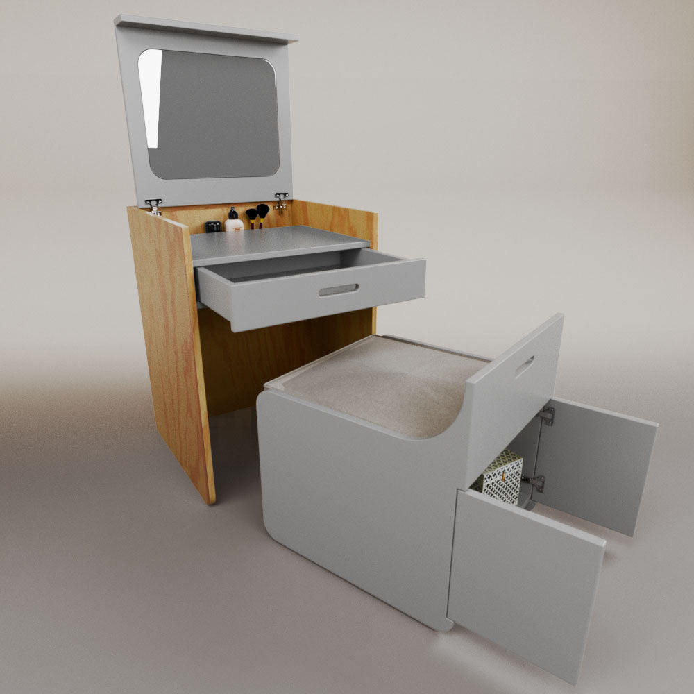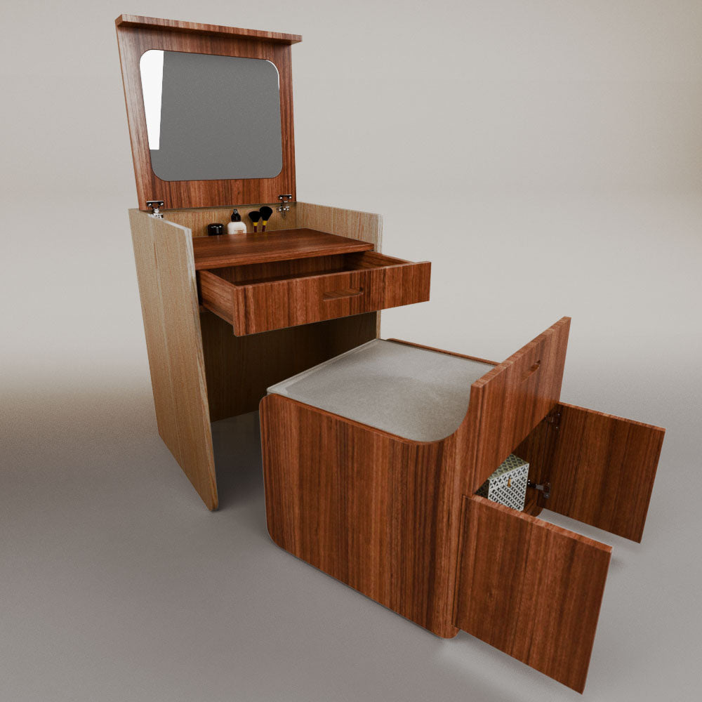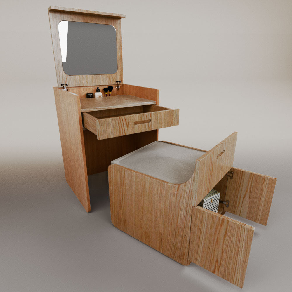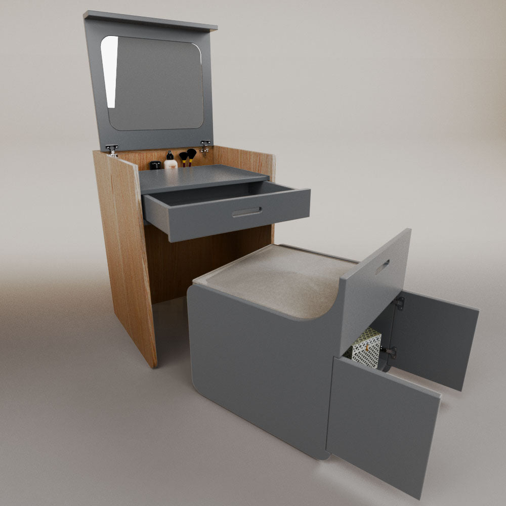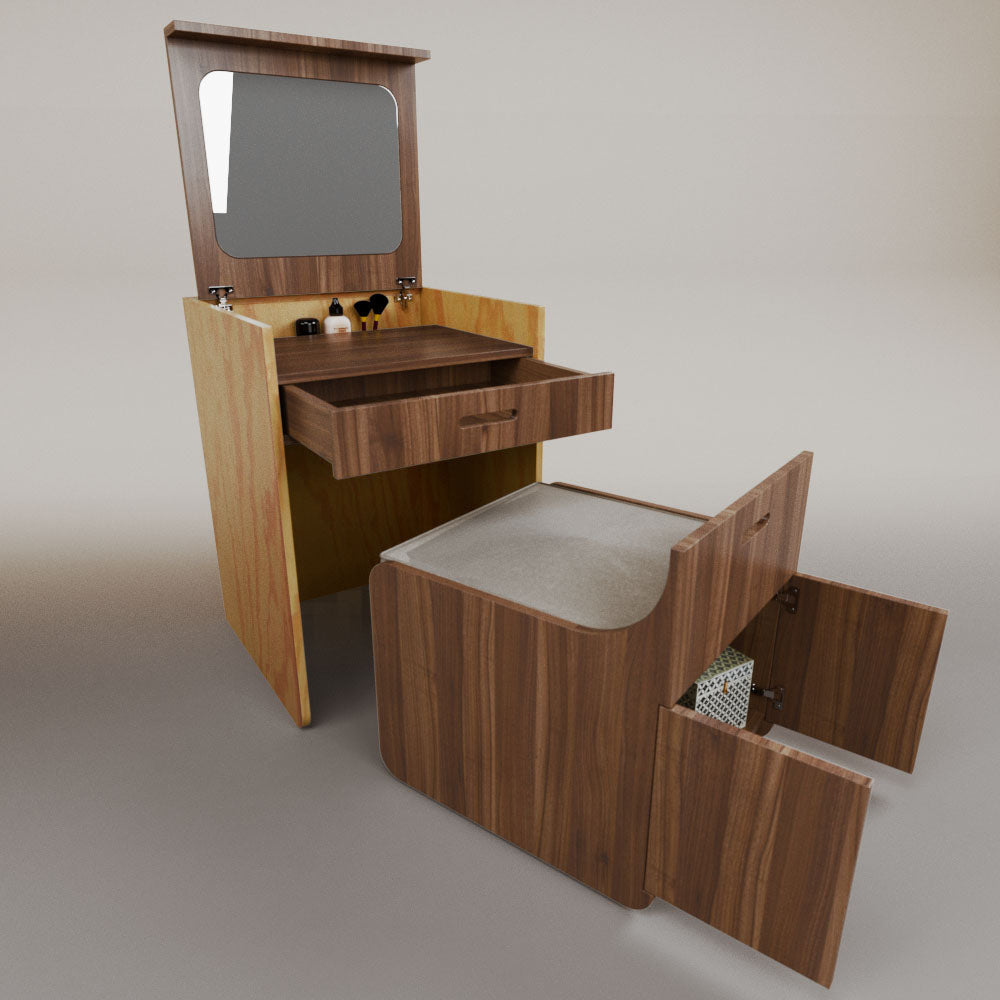 1 tapa abatible1 charola1 espejo1 cajón1 banca1 nicho cerrado1 cojín_______________________________60 x 60 x 84 (L x An x Al)_______________________________Entrega de 5-8 semanasGarantía 1 añoEnvío gratuito en CDMX