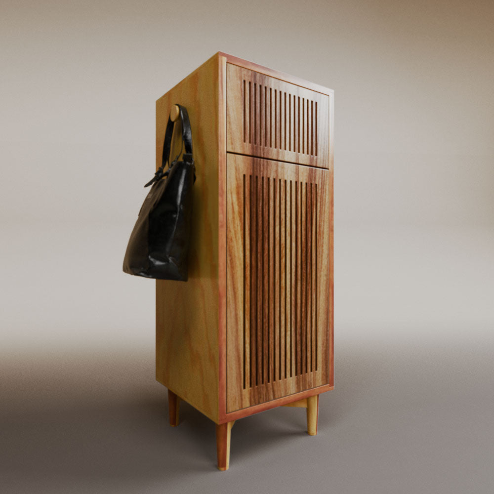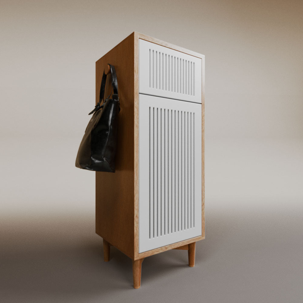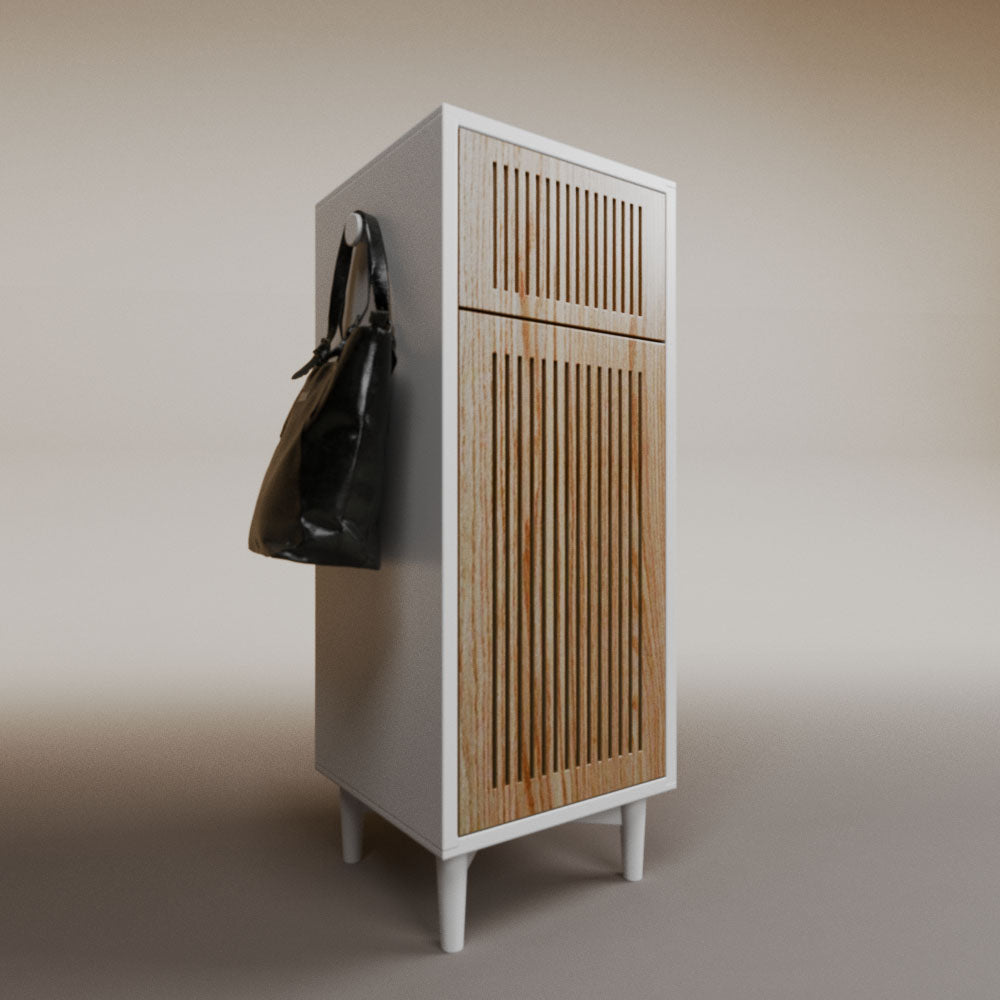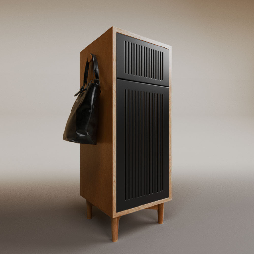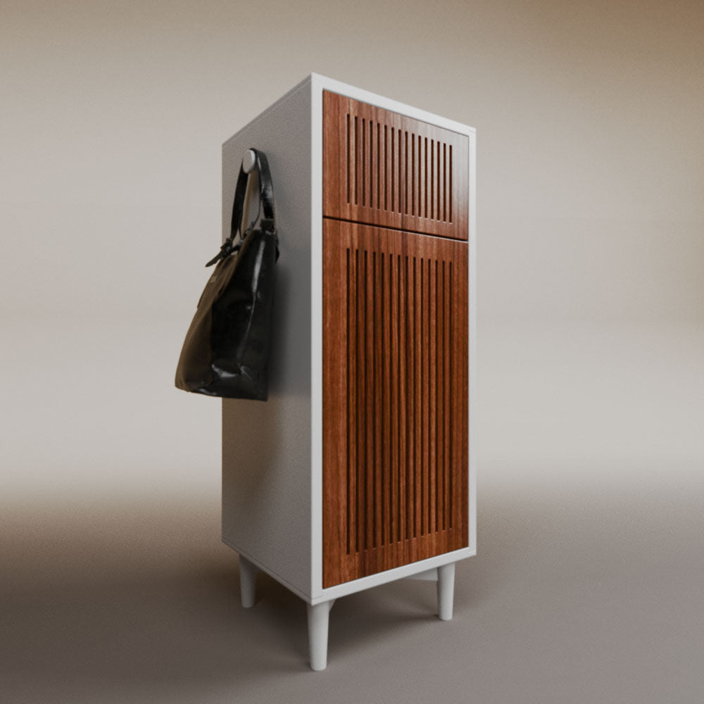 1 cajón3 nichos para hasta 3 pares de zapatos2 perchas_______________________________45 x 50 x 110 (L x An x Al)_______________________________Entrega de 5-8 semanasGarantía 1 añoEnvío gratuito en CDMX