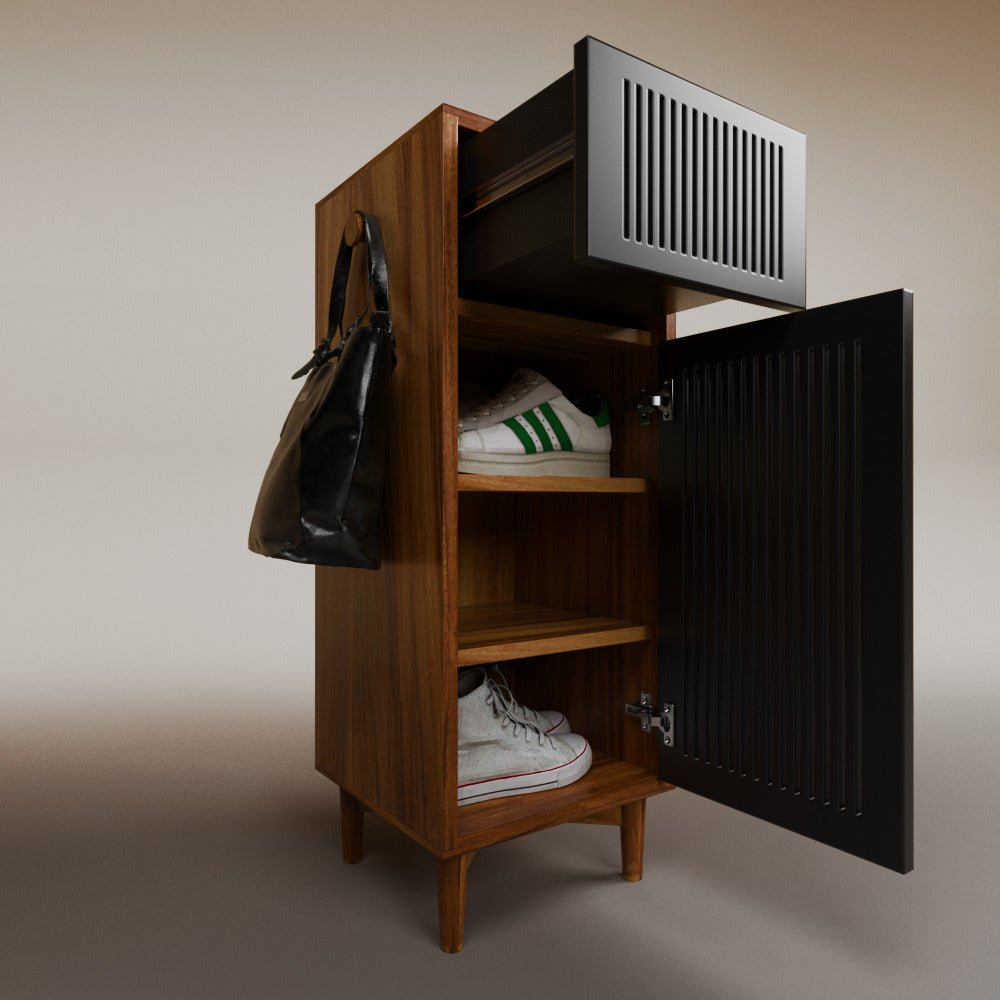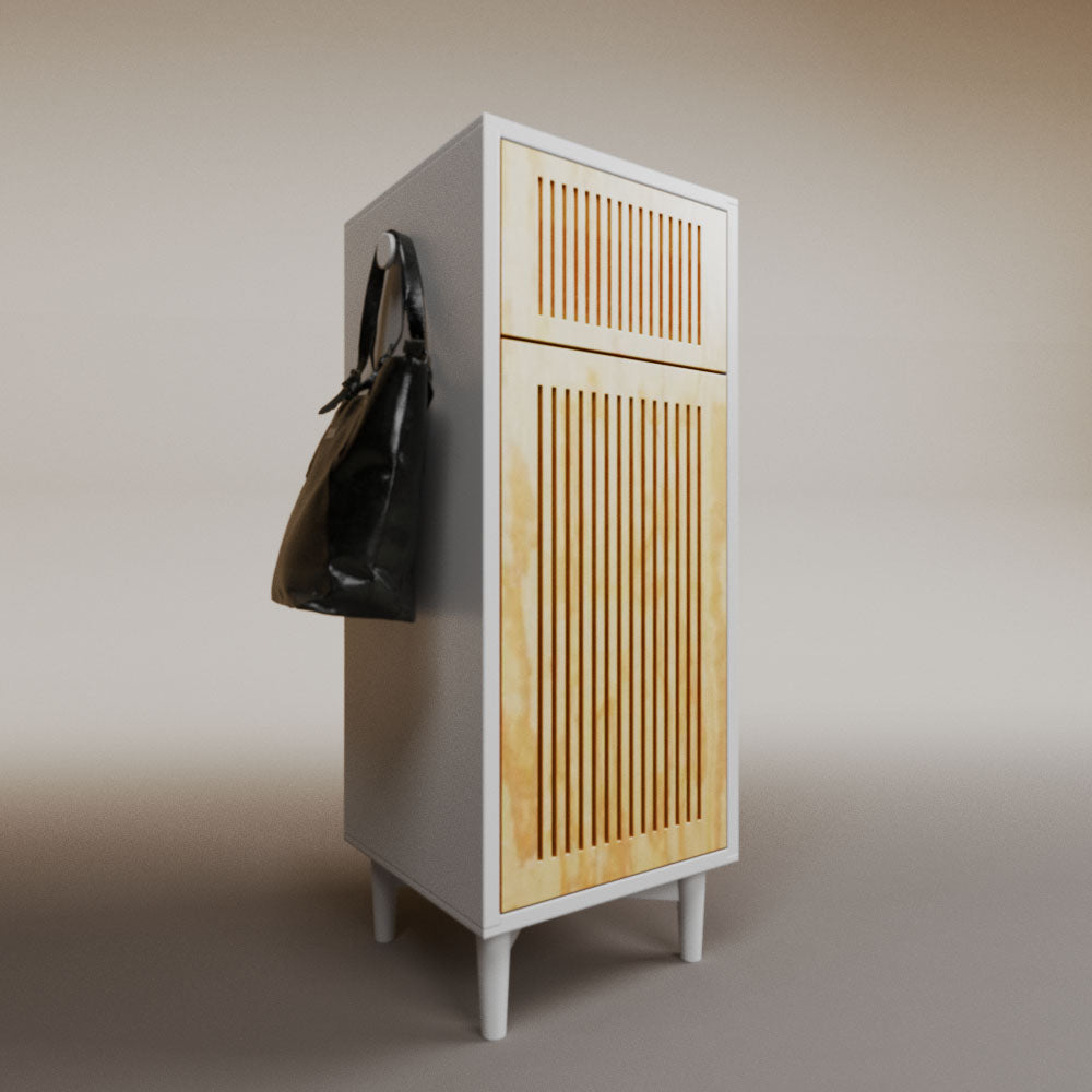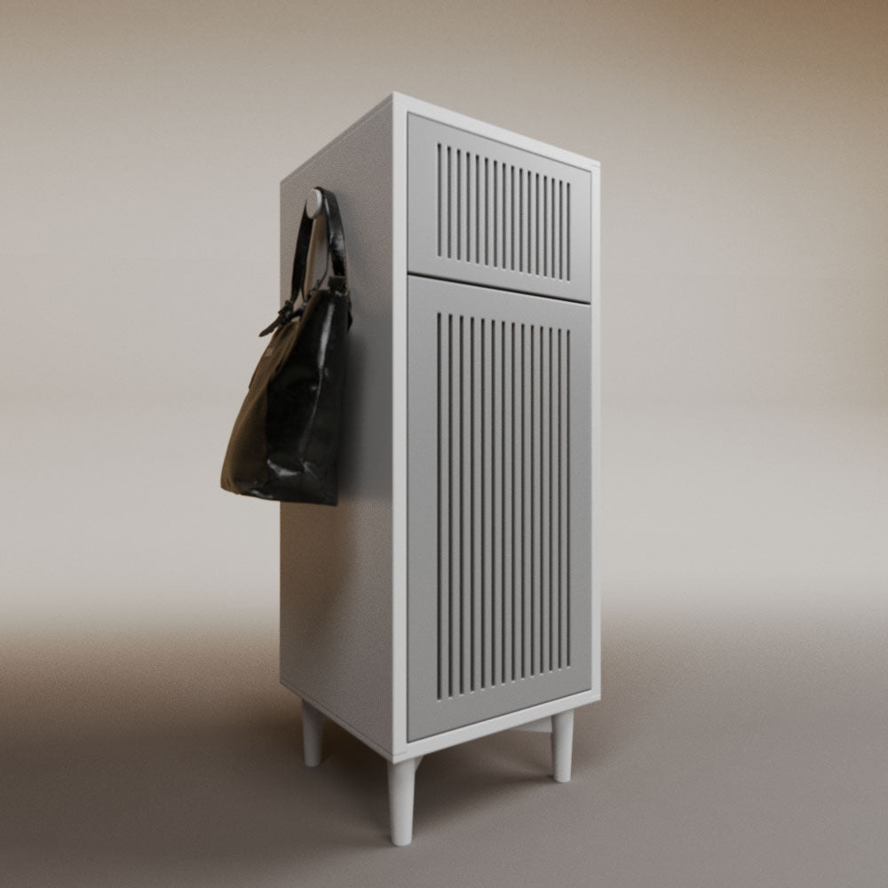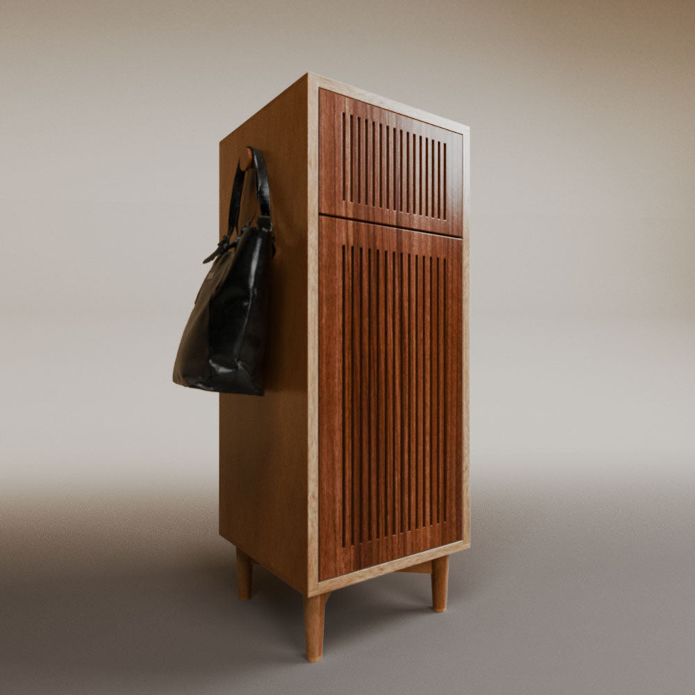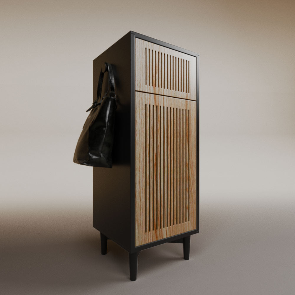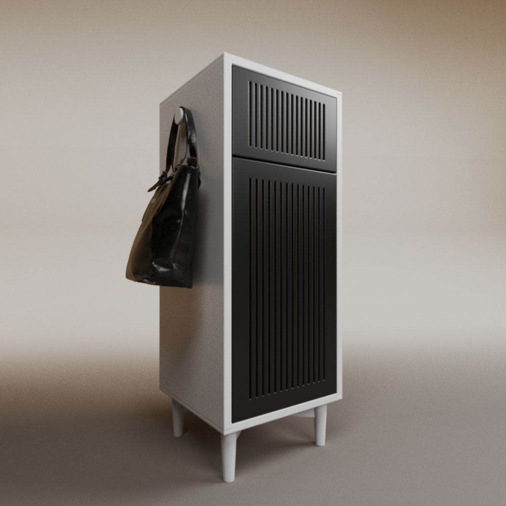 1 cajón3 nichos para hasta 3 pares de zapatos2 perchas_______________________________45 x 50 x 110 (L x An x Al)_______________________________Entrega de 5-8 semanasGarantía 1 añoEnvío gratuito en CDMX